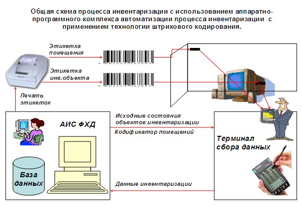 Для решения проблем, связанных с учетом основных средств и товарных запасов, используется технология, основанная на штриховом кодировании. Носителем информации об учитываемом объекте является специальная этикетка со штриховым кодом. В настоящее время практически все товары питания и многие товары повседневного спроса, включая мебель и бытовую технику, оснащены штрих-кодом. Современная инвентаризация использует эту особенность, базируя свои быстрые методы учёта на сканировании штрих-кодов. Для сбора информации о приходе, перемещении и снятии с учета используются терминалы сбора данных (ТСД) со встроенным сканером штрихового кода. Терминал сбора данных – устройство, сочетающее в себе функцию сканера штрихового кода и функцию обработки данных, полученных в результате распознавания штрихового кода. Такое сочетание создает возможность мобильного и автономного сбора информации, ее хранения и обработки.